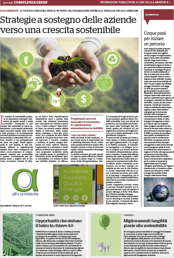 Leggi l’articolo dedicato ad Alfa Ambiente da Repubblica Roma in merito alle “Strategie a sostegno delle aziende verso una crescita sostenibile.”
